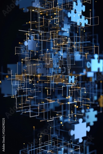 Wall mural a digital blueprint for a building with puzzle-piece architecture