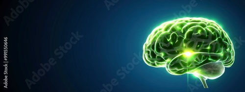 Wall mural a digital brain interface with glowing neural patterns, soft green and blue light reflecting off the - Wall murals Wall mural a digital brain interface with glowing neural patterns, soft green and blue light reflecting off the - Wall murals