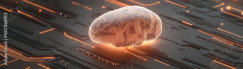 The watermark will not be included on Wall mural.: A digital brain with circuit-like patterns glowing on a circuit board, representing the fusion of te