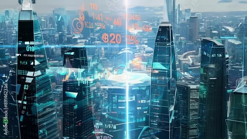 Wall mural a digital cityscape teeming with moving data towers showcasing the dynamic and everchanging nature o - Wall murals Wall mural a digital cityscape teeming with moving data towers showcasing the dynamic and everchanging nature o - Wall murals