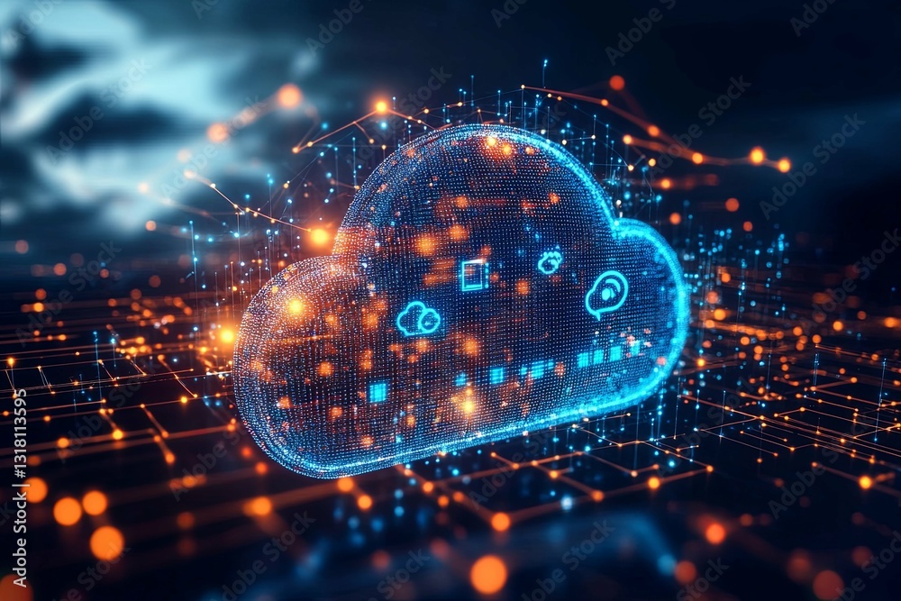 Wall mural : A digital cloud graphic showing data storage and networking connections