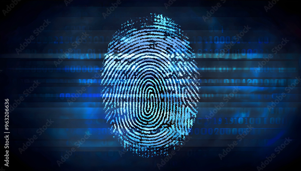 Wall mural a digital fingerprint on a blue background with lines of code. - Wall murals Wall mural a digital fingerprint on a blue background with lines of code. - Wall murals