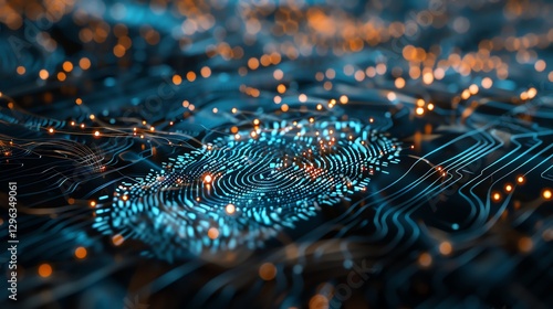 Wall mural a digital fingerprint on a circuit board with glowing lines and lights.