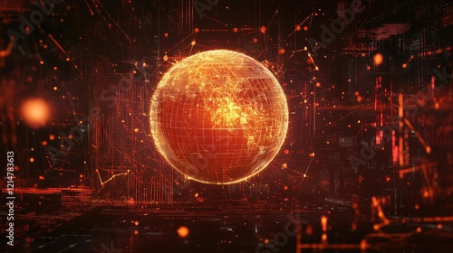 Wall mural a digital globe surrounded by blockchain nodes and glowing lines, symbolizing global connectivity - Wall murals Wall mural a digital globe surrounded by blockchain nodes and glowing lines, symbolizing global connectivity - Wall murals