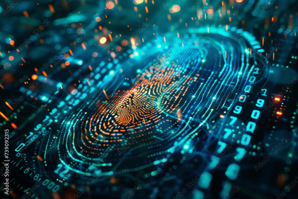 Wall mural a digital image of a fingerprint surrounded by numbers