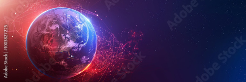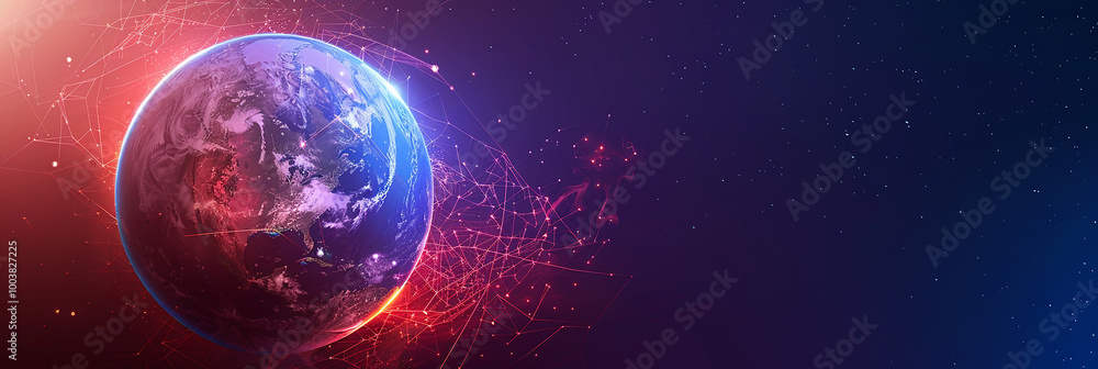 Wall mural a digital image of the earth with dynamic motion lines around an abstract blue background