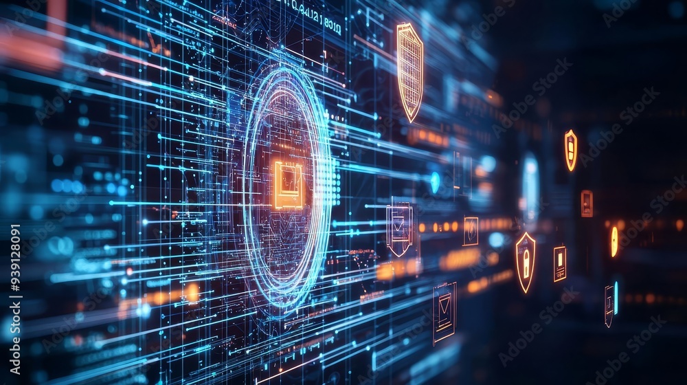 Wall mural a digital interface displaying hacker security breaches, with creative strategies employed to protec - Wall murals Wall mural a digital interface displaying hacker security breaches, with creative strategies employed to protec - Wall murals