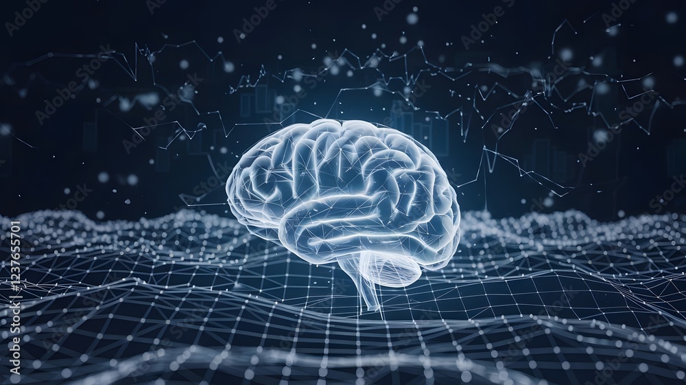 Wall mural a digital landscape where particles of light float and collide, representing the electrical activity - Wall murals Wall mural a digital landscape where particles of light float and collide, representing the electrical activity - Wall murals
