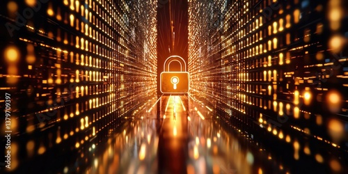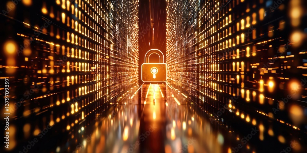 Wall mural a digital padlock, a symbol of security, standing guard over a stream of binary code, signifying the - Wall murals Wall mural a digital padlock, a symbol of security, standing guard over a stream of binary code, signifying the - Wall murals