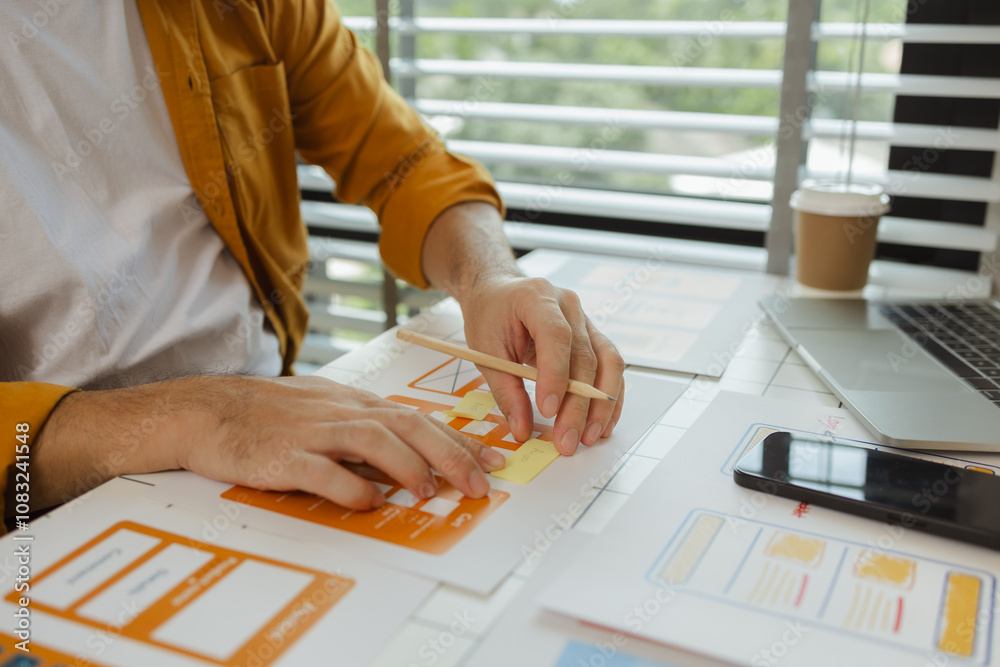 Wall mural : A digital product developer is working on a plan to work with research data to guide the development