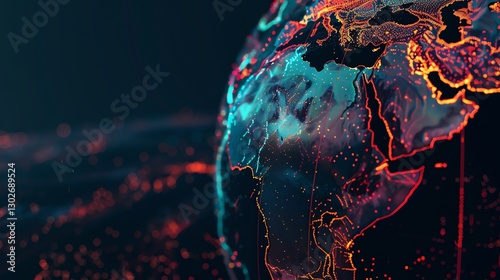 The watermark will not be included on Wall mural.: A digital rendering of the globe with glowing lines -