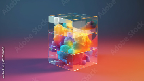 The watermark will not be included on Wall mural.: A digital representation of a quantum computer, orange computer boards microchips multi-cornered tec