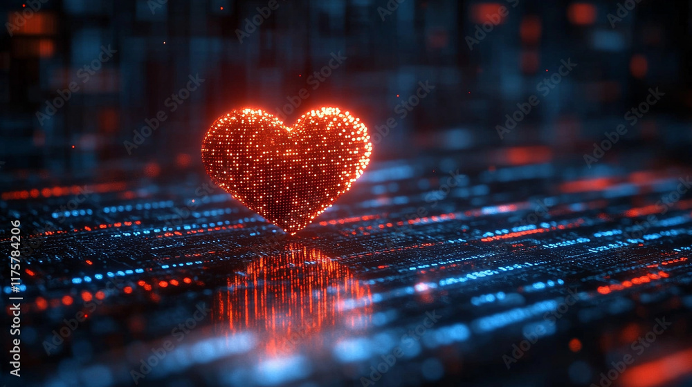 Wall mural a digital representation of binary codes and cyberspace forming heart shapes symbolizing love in fut - Wall murals Wall mural a digital representation of binary codes and cyberspace forming heart shapes symbolizing love in fut - Wall murals