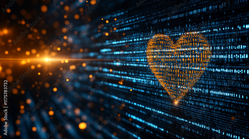 Wall mural : A digital representation of binary codes and cyberspace forming heart shapes symbolizing love in fut