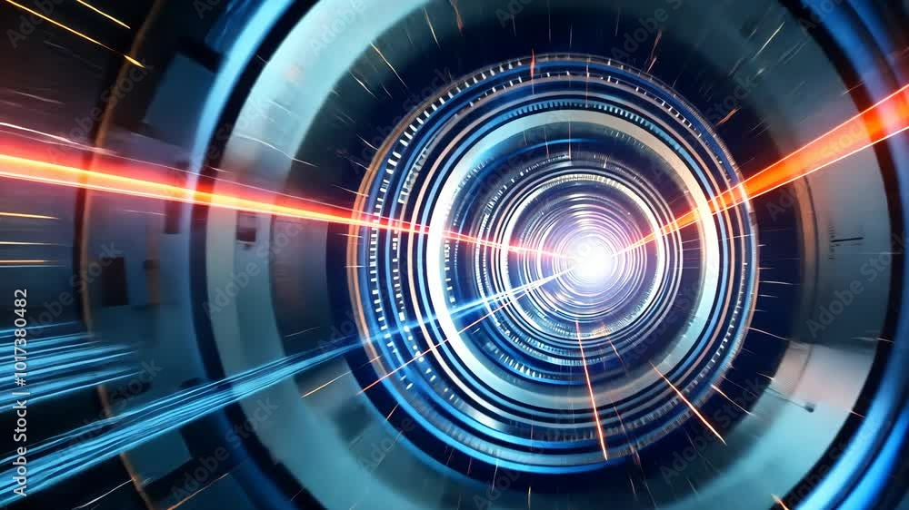 The watermark will not be included on Wall mural.: A digital tunnel with glowing red lines extends into the distance, representing the speed of the int