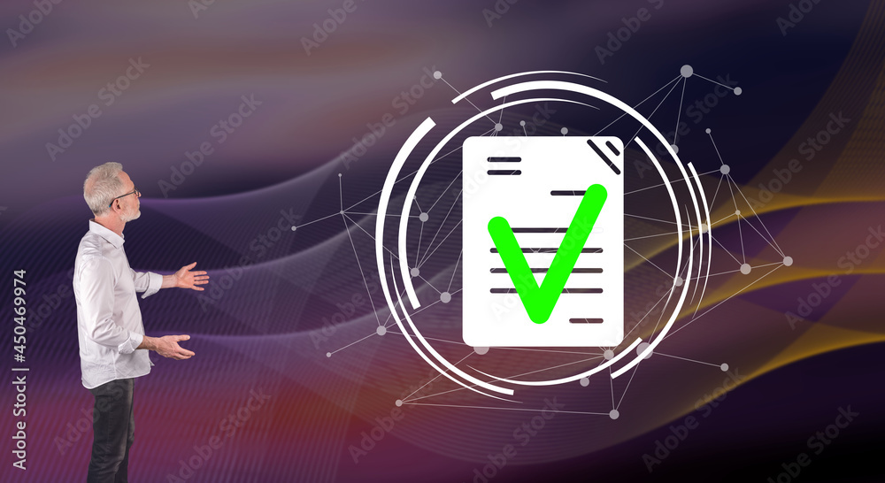 Wall mural a document validation concept explained by a businessman on a wall screen - Wall murals Wall mural a document validation concept explained by a businessman on a wall screen - Wall murals