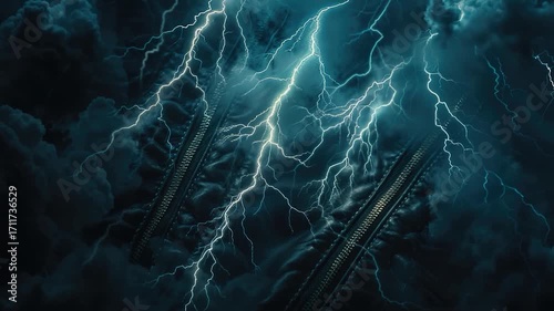 The watermark will not be included on Wall mural.: A dramatic display of lightning in the night sky, ideal for use as a background or atmospheric eleme
