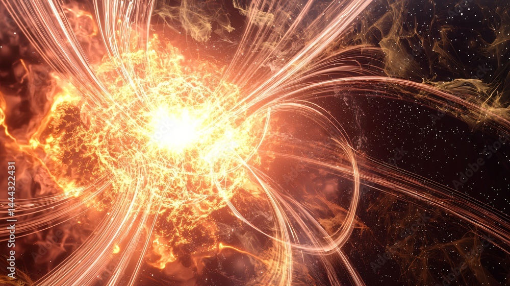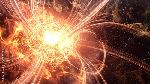 Wall mural : A dramatic moment capturing a star exploding in the air with celestial energy fields and hyperbolic