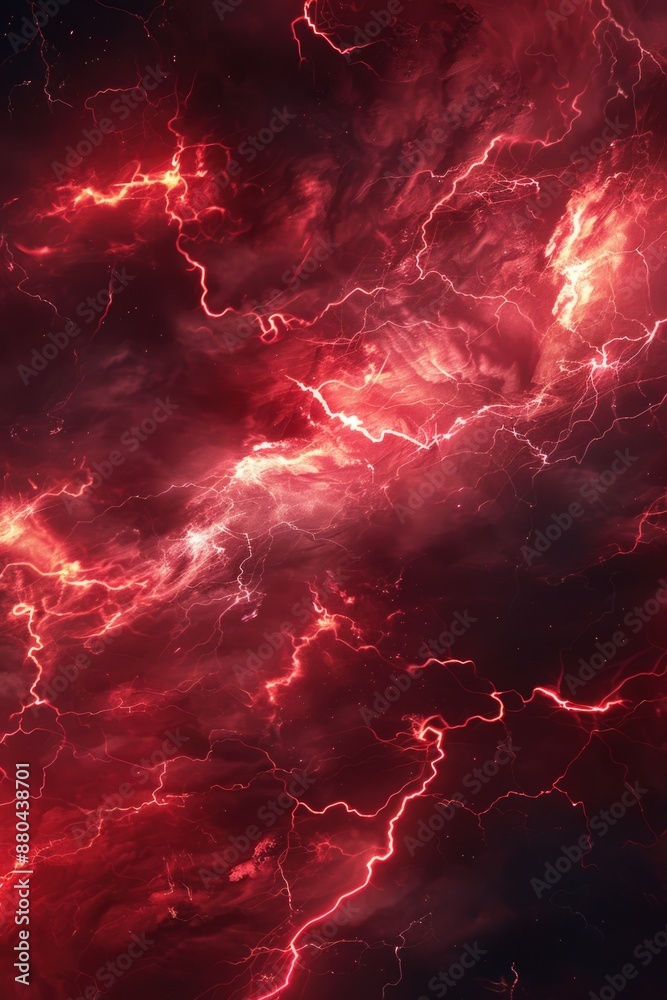 The watermark will not be included on Wall mural.: A dramatic red and black background with lightning illuminating the darkened sky