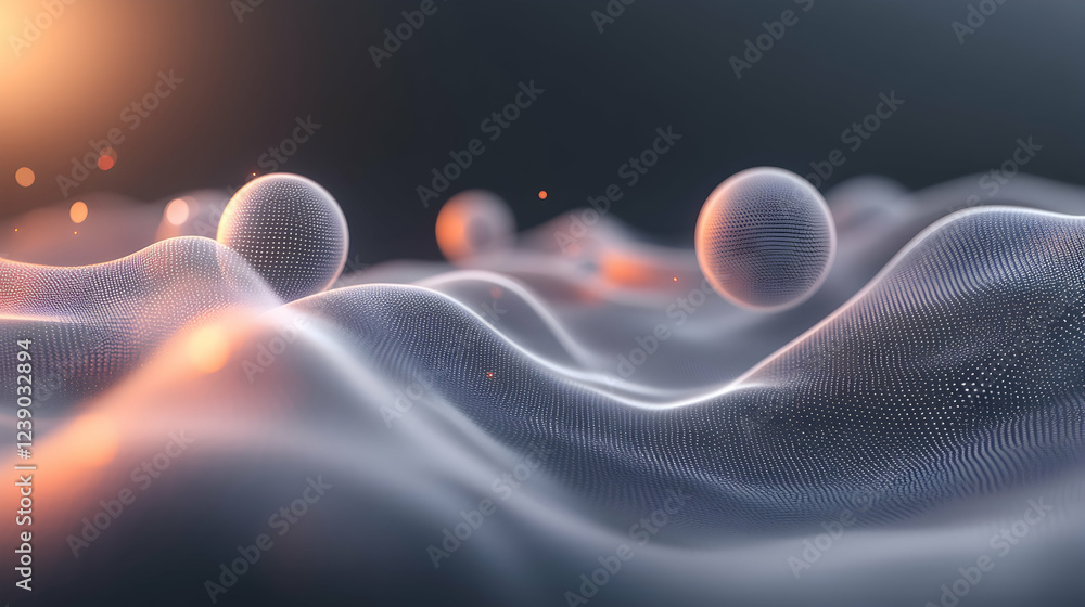The watermark will not be included on Wall mural.: A dreamy 3d abstract composition with a dark gray background, illuminated by a soft light gradient a