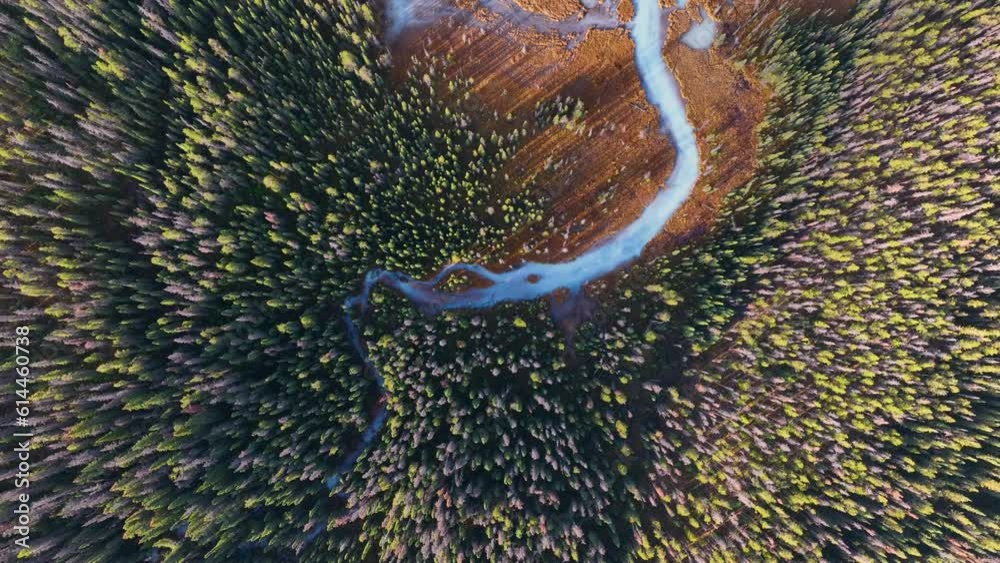 The watermark will not be included on Wall mural.: A drone view of the river in the woods - an aerial view of a forest and river - banff national park, a