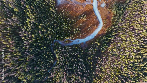 Wall mural a drone view of the river in the woods. an aerial view of a forest and river. banff national park, a
