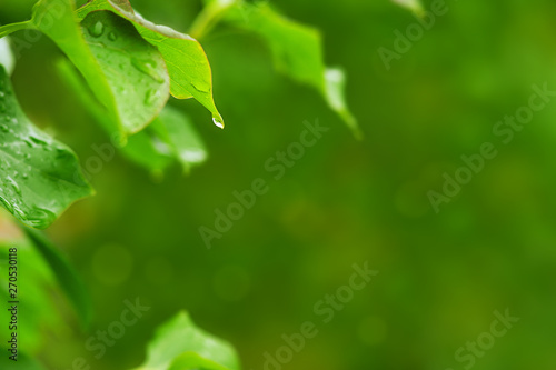 Wall mural a drop of rain on a leaf of a tree. macro. a drop of rain and leaves of a tree on a blurred bokeh ba - Wall murals Wall mural a drop of rain on a leaf of a tree. macro. a drop of rain and leaves of a tree on a blurred bokeh ba - Wall murals