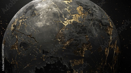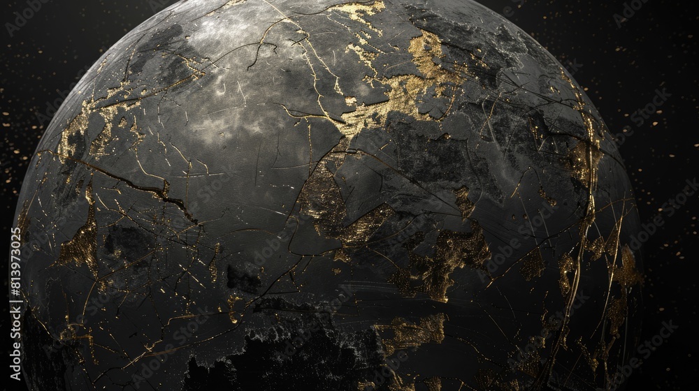 The watermark will not be included on Wall mural.: A dynamic 3d rendering showcases abstract art featuring a damaged spherical earth like planet moon o
