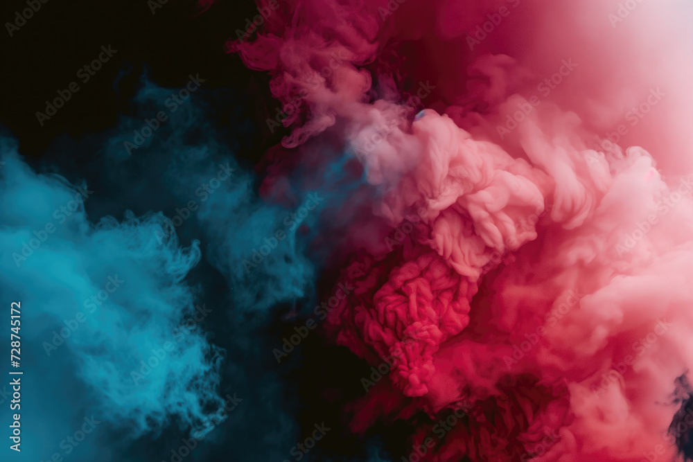 The watermark will not be included on Wall mural.: A dynamic and colorful abstract background of billowing smoke in teal and magenta hues, creating a m