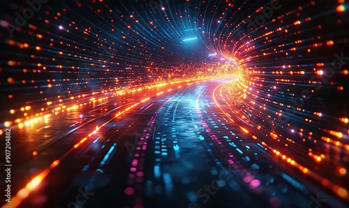 Wall mural : A dynamic and colorful digital background illustrates data transfers and technology with light strea