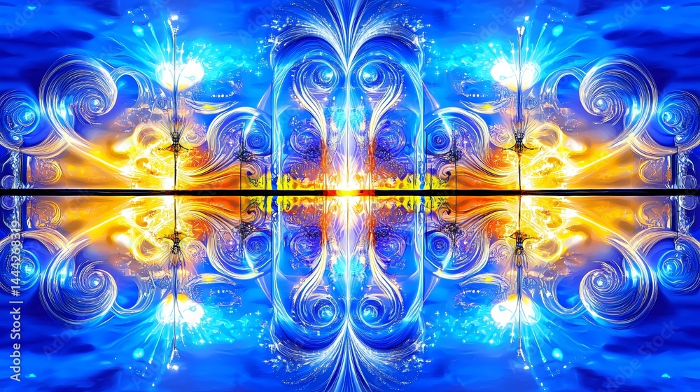 The watermark will not be included on Wall mural.: A dynamic blue and yellow abstract background with fluid patterns and bright hues creating a vivid a