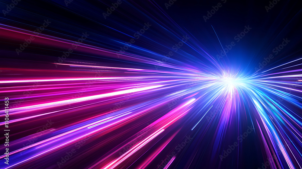 Wall mural : A dynamic cityscape with light trails representing fast movement on the highway