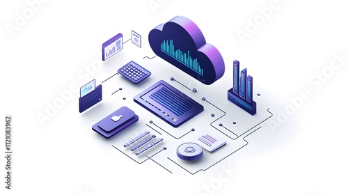 Wall mural a dynamic collection of digital devices, cloud icons, and graphs representing tech integration in bu