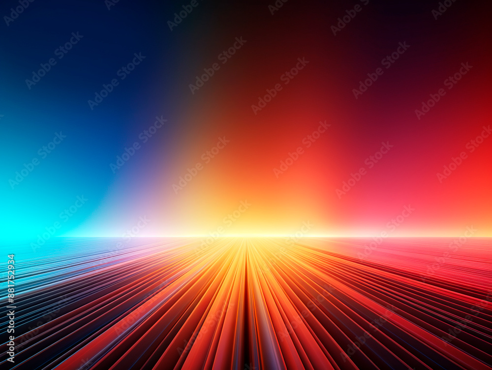 The watermark will not be included on Wall mural.: A dynamic image of converging lines with a gradient from blue to red, symbolizing speed or technolog