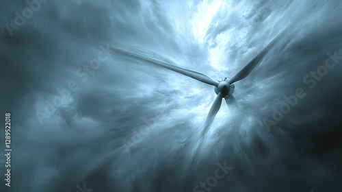 Wall mural a dynamic image showing wind turbines spinning rapidly under fast-moving storm clouds.