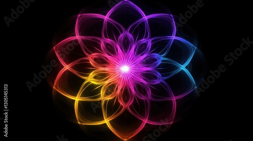 Wall mural a dynamic radial burst pattern in neon colors, creating a glowing effect on a black background. - Wall murals Wall mural a dynamic radial burst pattern in neon colors, creating a glowing effect on a black background. - Wall murals