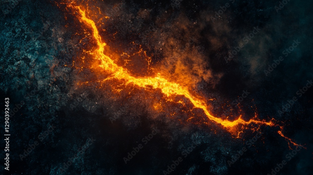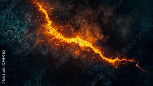 The watermark will not be included on Wall mural.: A dynamic representation of molten lava flowing through a dark and mystical setting - the fiery glow