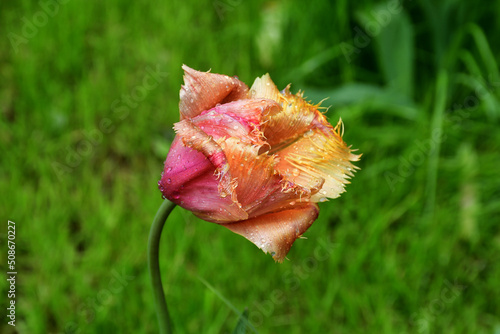 A fading tulip flower in raindrops in natural conditions in the garden - completion of flowering - natWall mural