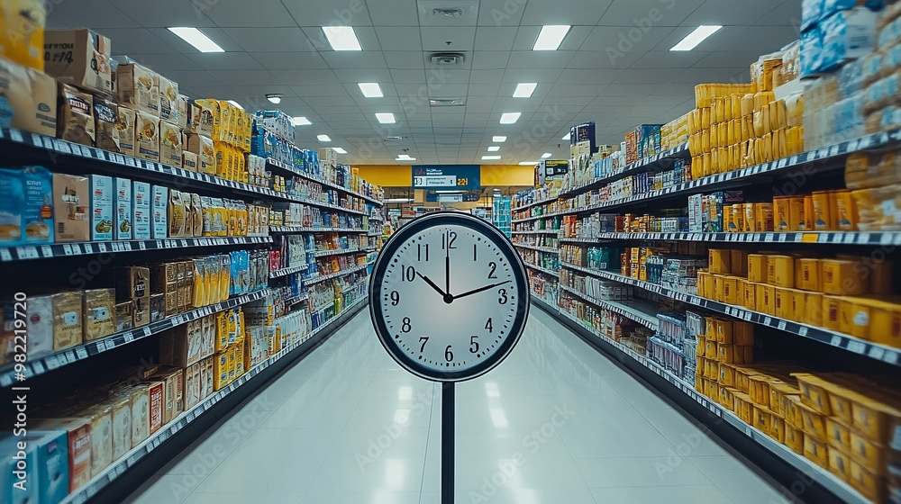 Wall mural a fast-paced flash sale visual featuring a large countdown clock at the forefront. around it are pro - Wall murals Wall mural a fast-paced flash sale visual featuring a large countdown clock at the forefront. around it are pro - Wall murals