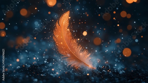 Wall mural a feather that shines like an ember drifts softly on a dark, enigmatic background, accompanied by th