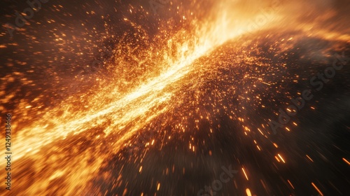 The watermark will not be included on Wall mural.: A fiery explosion in space with a lot of sparks flying out