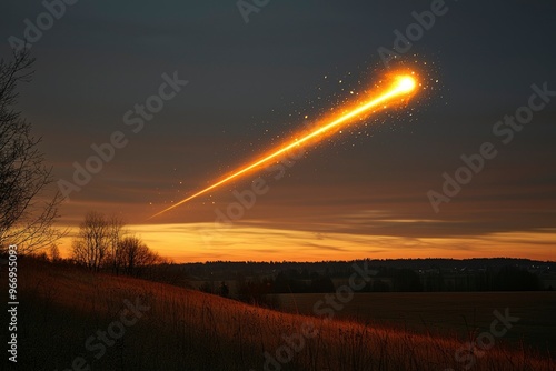 Wall mural a fiery meteor streaks across the evening sky with a trailing spark - Wall murals Wall mural a fiery meteor streaks across the evening sky with a trailing spark - Wall murals