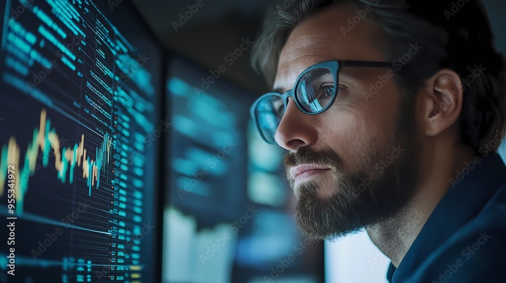 Wall mural a financial analyst developing models to forecast risks and recommend mitigation strategies. - Wall murals Wall mural a financial analyst developing models to forecast risks and recommend mitigation strategies. - Wall murals