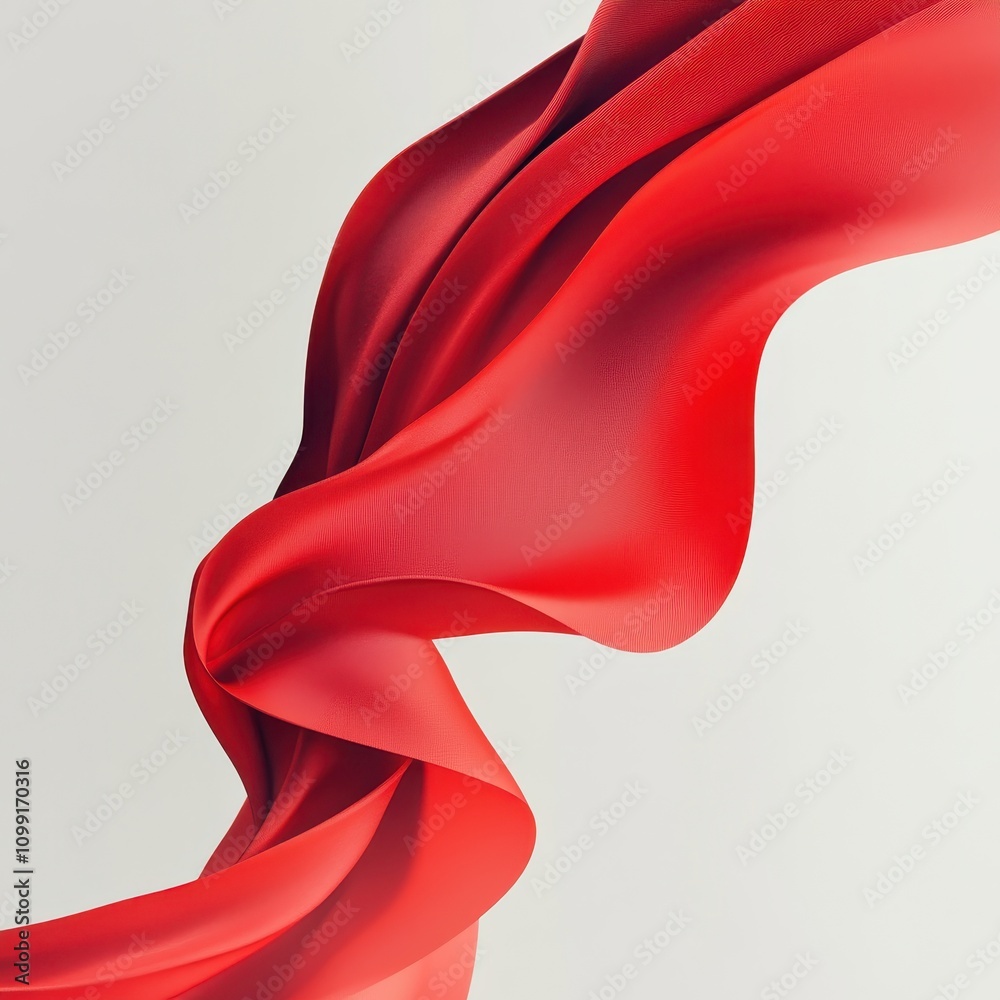 The watermark will not be included on Wall mural.: A flowing red ribbon creating a dynamic and elegant shape against a light background -
