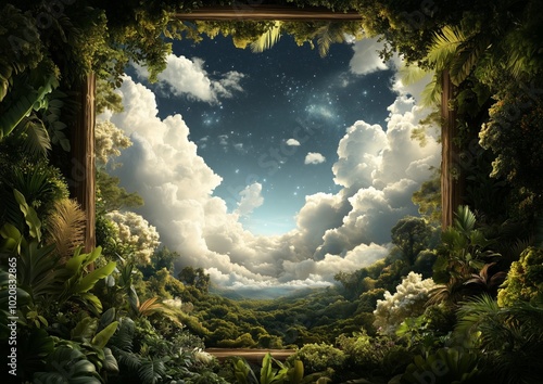 Wall mural a forest scene with a large tree in the foreground and a large tree in the background. the sky is cl - Wall murals Wall mural a forest scene with a large tree in the foreground and a large tree in the background. the sky is cl - Wall murals