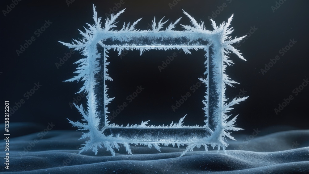 Wall mural a frame showcasing a frosty design on a dark background. an abstract ice frame enables the addition  - Wall murals Wall mural a frame showcasing a frosty design on a dark background. an abstract ice frame enables the addition - Wall murals