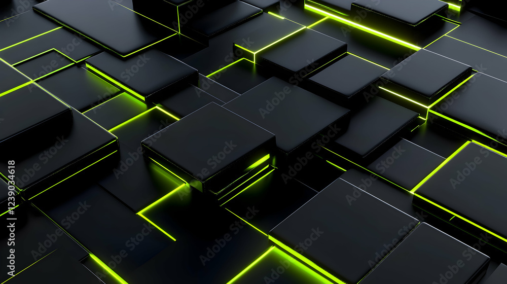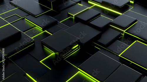 Wall mural a futuristic 3d abstract design with a smooth gradient of neon green and black, featuring geometric  - Wall murals Wall mural a futuristic 3d abstract design with a smooth gradient of neon green and black, featuring geometric - Wall murals