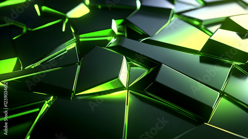 Wall mural a futuristic 3d abstract design with a smooth gradient of neon green and black, featuring geometric  - Wall murals Wall mural a futuristic 3d abstract design with a smooth gradient of neon green and black, featuring geometric - Wall murals