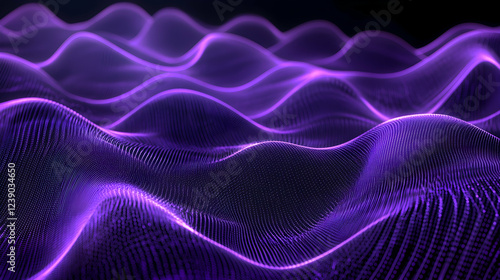 Wall mural a futuristic 3d abstract wave pattern with a gradient of electric purple and black, featuring glowin