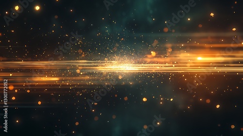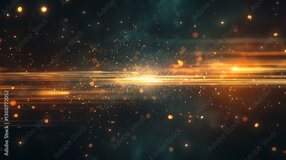 The watermark will not be included on Wall mural.: A futuristic abstract design with holographic light trails and sparkles floating on a dark gradient